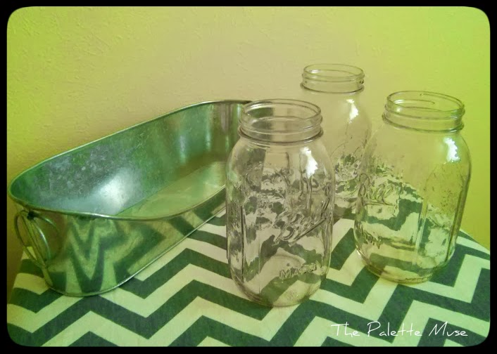 I found this little galvanized tin for $2.99 and then started looking around for something to put in it. I found three large mason jars for $.69 each, and figured I could come up with some way to use them together. Instead I came up with three ways!