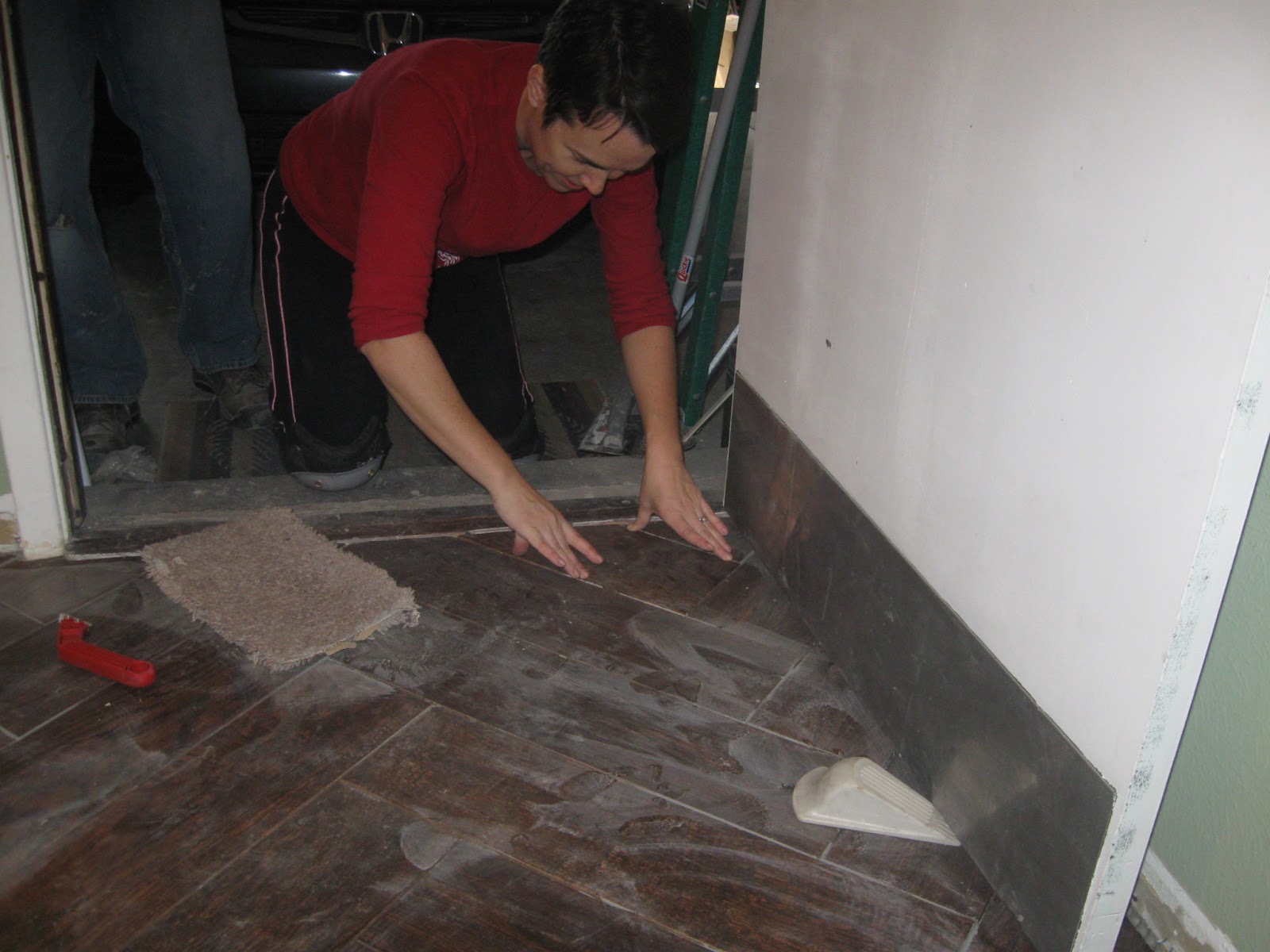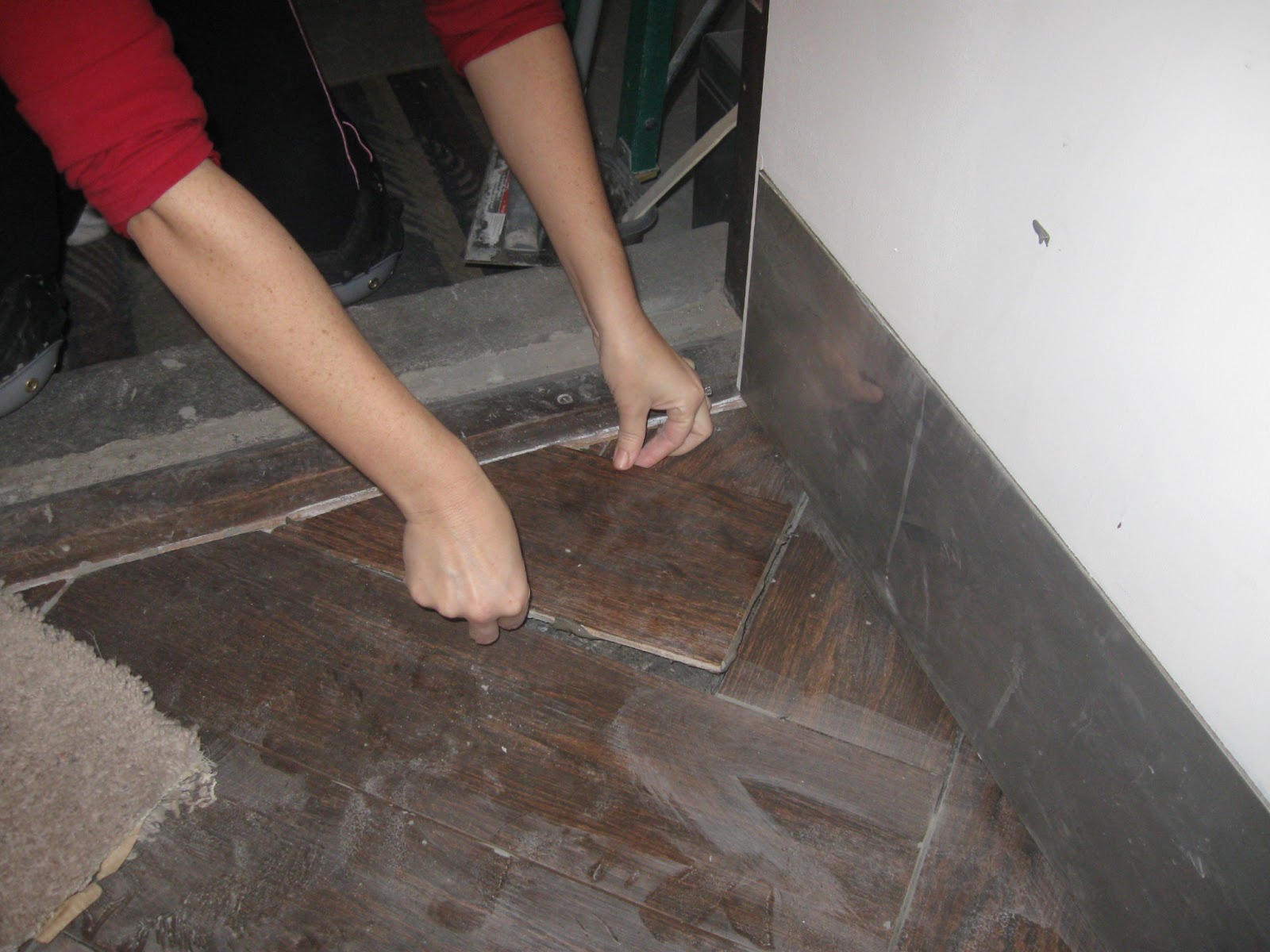 I love "After" pictures! I am finally writing to show you the results of our tile-project-from-hell. I thought herringbone wood look tile was just what our house needed, but little did I know how hard it would be for amateur DIYers to do!