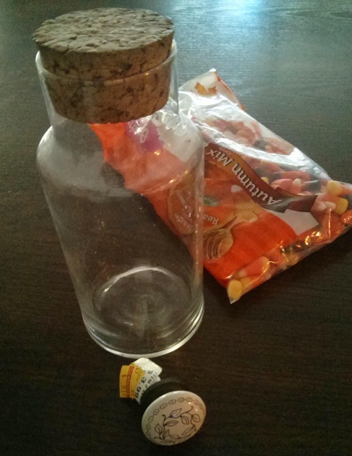 9. Fill the jar with any remaining candy corn. Make a note to buy more at the store, since yours no longer fills the jar adequately.